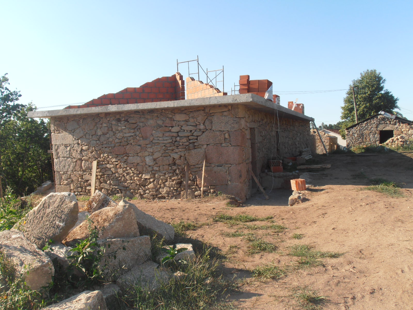 Fernando, avec son fidèle tracteur, a entrepris la lourde tâche de restaurer les ruines.