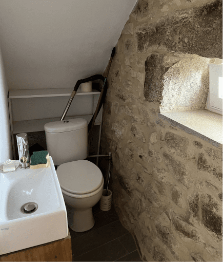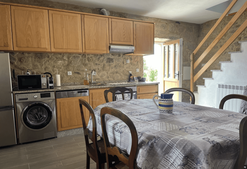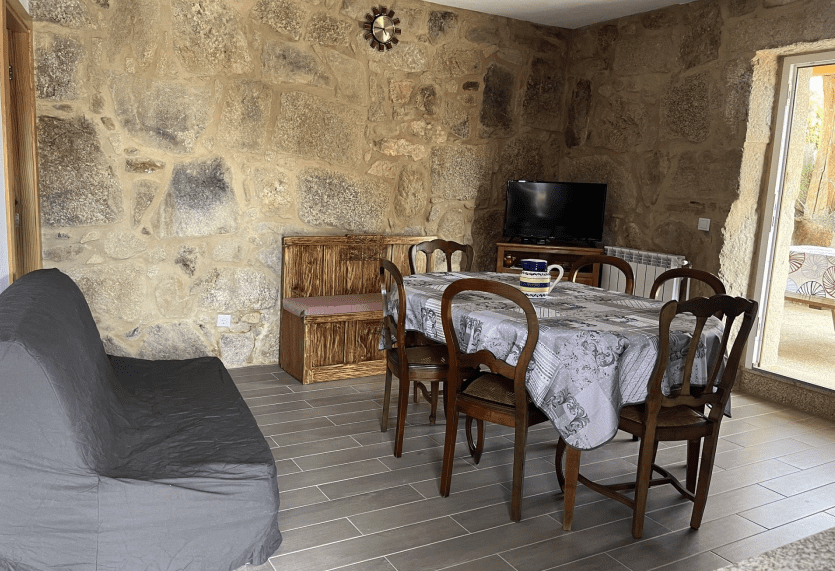Maison en pierres de la région, composée d’un salon avec cuisine ouverte et sanitaires au rez-de-chaussée. À l’étage, salle de bain, deux chambres avec lits doubles, ainsi qu’un canapé-lit.