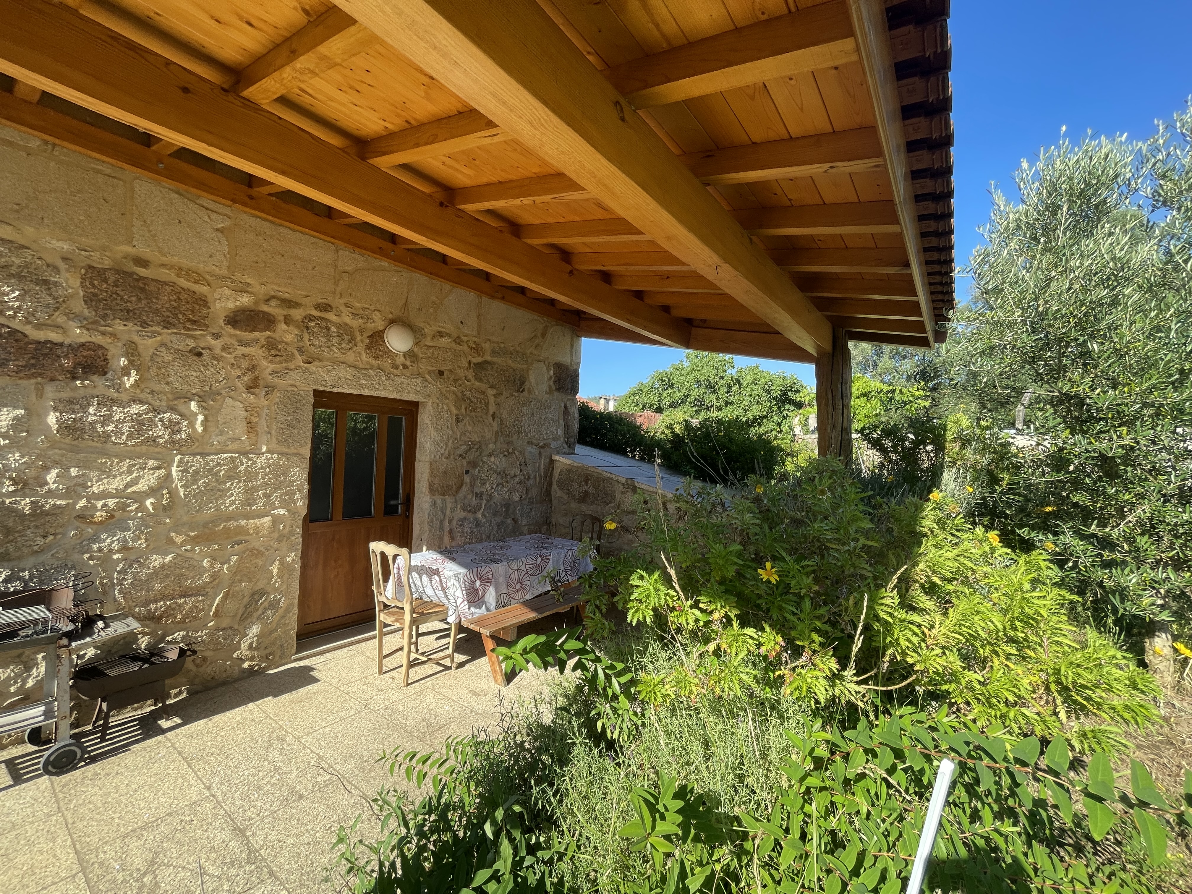 Accès aux espaces verts et à la terrasse couverte pour profiter de l’air de la campagne.
